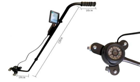 顯示器采用高清TFT數字屏。獨家開發驅動板,具有使圖像上下轉換和100倍電子變光等強大功能。使您的畫面更逼真色彩更鮮艷。攝像頭采用SHARP、CCD傳感器,3—5米紅外,使您即使在黑夜也能正常適用。采用飛機式三角車輪,使您的操作更輕便,使用更舒心。